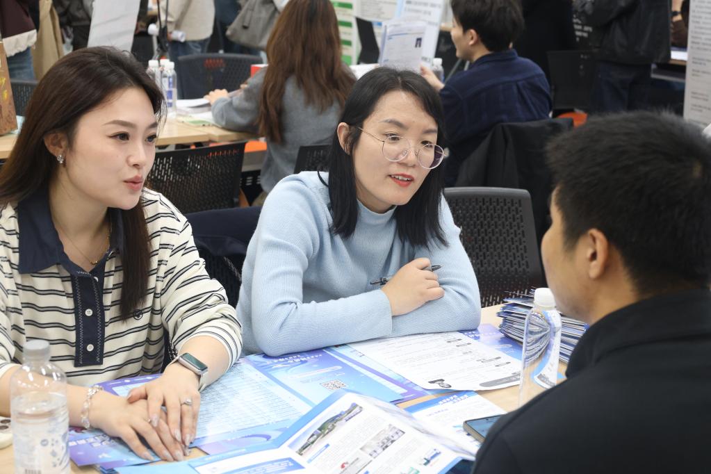 初冬蓄势扬帆起,蠡湖引航共筑梦。11月7日下午,江南大学2026届毕业生电子信息类专场校园招聘会在蠡湖校区北区大学生活动中心F105成功举办。本次招聘会由物联网工程学院、人工智能与计算机学院和集成电路学院联合举办,吸引了包括华为、小米、中国电子科技集团、长虹智能装备、村田电子、中天钢铁、苏南机场集团等66家知名企业、科研院所参与,涵盖物联网、自动控制、电气工程、人工智能、软件工程、集成电路等多个电子信息前沿领域,共提供优质岗位1800余个,吸引了近千名毕业生到场参与。