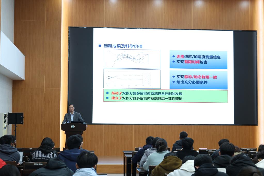 交流环节,师生围绕理论落地应用提问,徐胜元结合实践经验细致解答,聚焦技术前沿,清晰呈现地面自主运动平台控制研究的核心逻辑,为师生把握该领域发展方向提供了宝贵学术参考。
