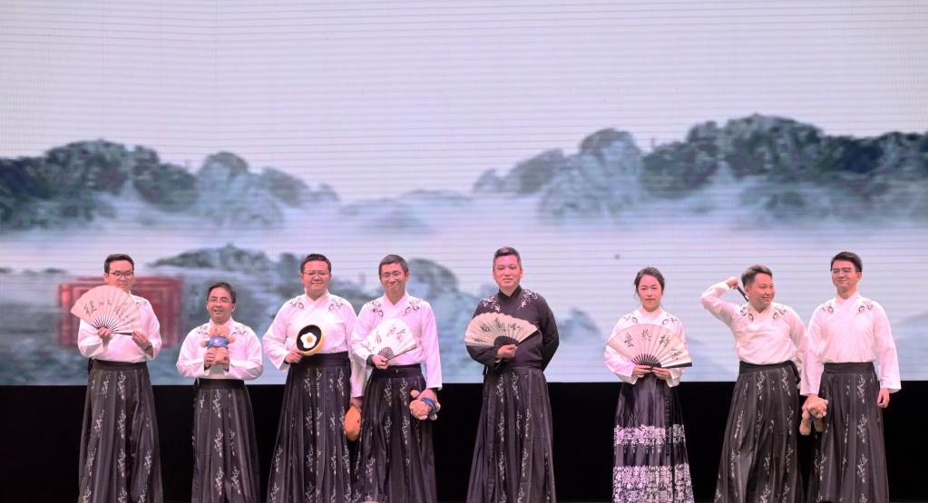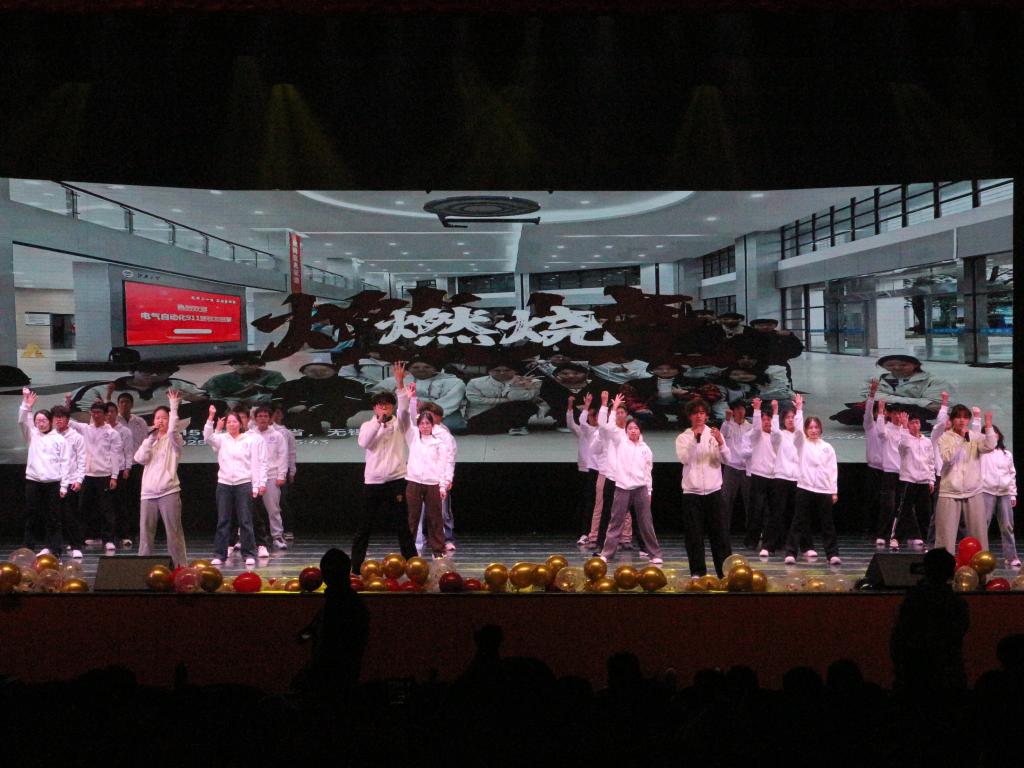 第三篇章联梦·筑华章。在极具感染力的旋律中,声乐部《玫瑰少年》真挚的演唱直击人心。他们唱出了青春的脆弱与坚韧,更传递出一种“成为自己”的温柔勇气。随着强节奏音乐炸响,舞台进入《Step Back》时间。干净利落的群舞动作,充满张力的肢体控制,共同构筑了一场视觉与听觉的双重冲击。《小抬杠》上演语言交锋。你来我往,妙语连珠,在看似幼稚的抬杠中抖出智慧包袱,令人捧腹。《青春如火》由辅导员与班助共同演绎。舞台上的他们褪去身份标签,以整齐划一的动作和迸发的活力,诠释着陪伴最好的模样。