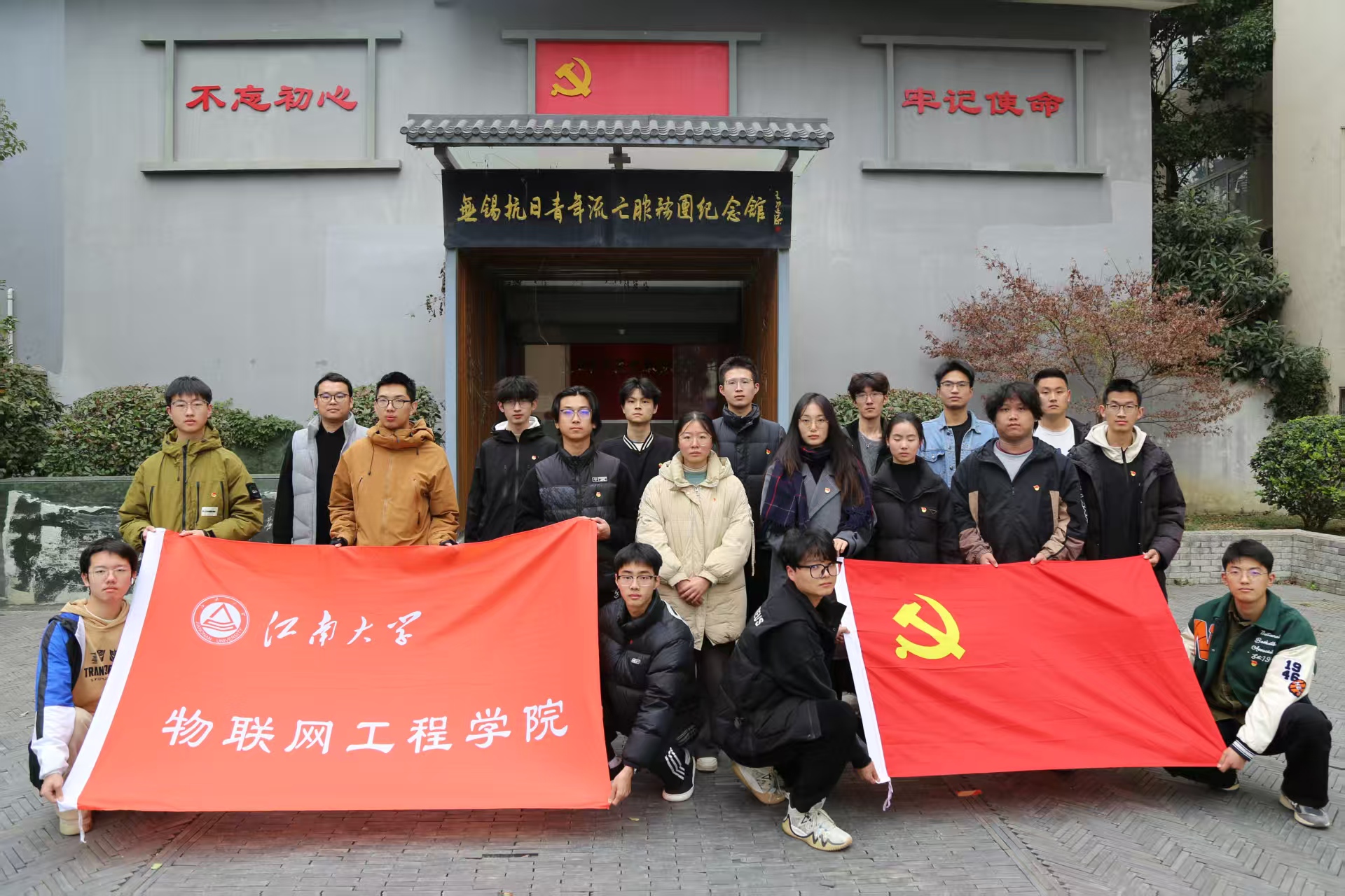 2025年12月10日下午,物联网工程学院本科生第二党支部联合雷锋特称团支部,赴无锡市抗日青年流亡服务团纪念馆(“锡流”纪念馆)开展“感悟‘锡流’精神,砥砺初心使命”主题党日活动。本次活动正值党支部从严从实把好预备党员接收与转正工作,第十二个国家公祭日来临前夕,旨在通过红色教育引导青年党员与团员在历史中汲取力量,坚定理想信念。全体党员与团员代表通过沉浸式学习、重温誓词、党团研讨等形式,筑牢信仰根基。