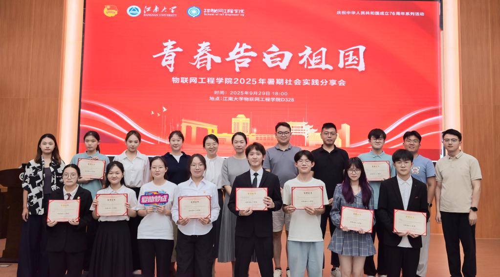 功崇惟志,业广惟勤。本次分享会不仅是一次成果的集中展示,更是一堂生动的“行走”的思政大课。它激励着物联网工程学院的广大学子,将继续把爱国情、强国志、报国行自觉融入新时代的追梦征程中,用奋斗与实干为强国建设、民族复兴贡献青春力量!今后,学院将持续优化社会实践工作体系,创新实践育人模式,提升实践活动质量,引导广大青年学生在社会实践中受教育、长才干、做贡献,厚植家国情怀,锤炼过硬本领,努力成长为担当民族复兴大任的时代新人。