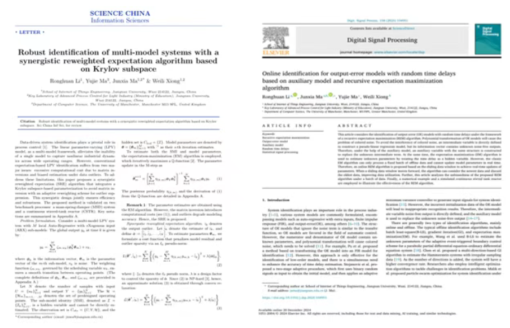 李榕桓的科研之路,始于本科三年级的那次推免选择。他跟随马君霞老师从事系统辨识与参数估计的研究。"马老师严谨的治学态度和对学生的悉心指导,让我确定这里就是我想要深耕的地方。"进入硕士阶段后,李榕桓才真正体会到什么是"坐得住"。一篇高质量的学术论文,往往需要数月打磨。从文献调研、实验设计,到算法优化、论文撰写,每一个环节都需要专注与耐心。"有时候一个实验结果不对,可能要反复调试好几周;有时候审稿意见回来,需要大改甚至重写。"李榕桓说,"科研没有捷径,唯有沉下心来,一步一个脚印。"这种"坐得住"的定力,最终结出了硕果。硕士期间,他在中科院1区Top期刊(CCF-A类)、IEEE Transactions系列等高水平期刊发表论文4篇,撰写发明专利2项。更重要的是,他逐渐培养起独立思考和解决问题的能力,这将成为他未来科研道路上最宝贵的财富。