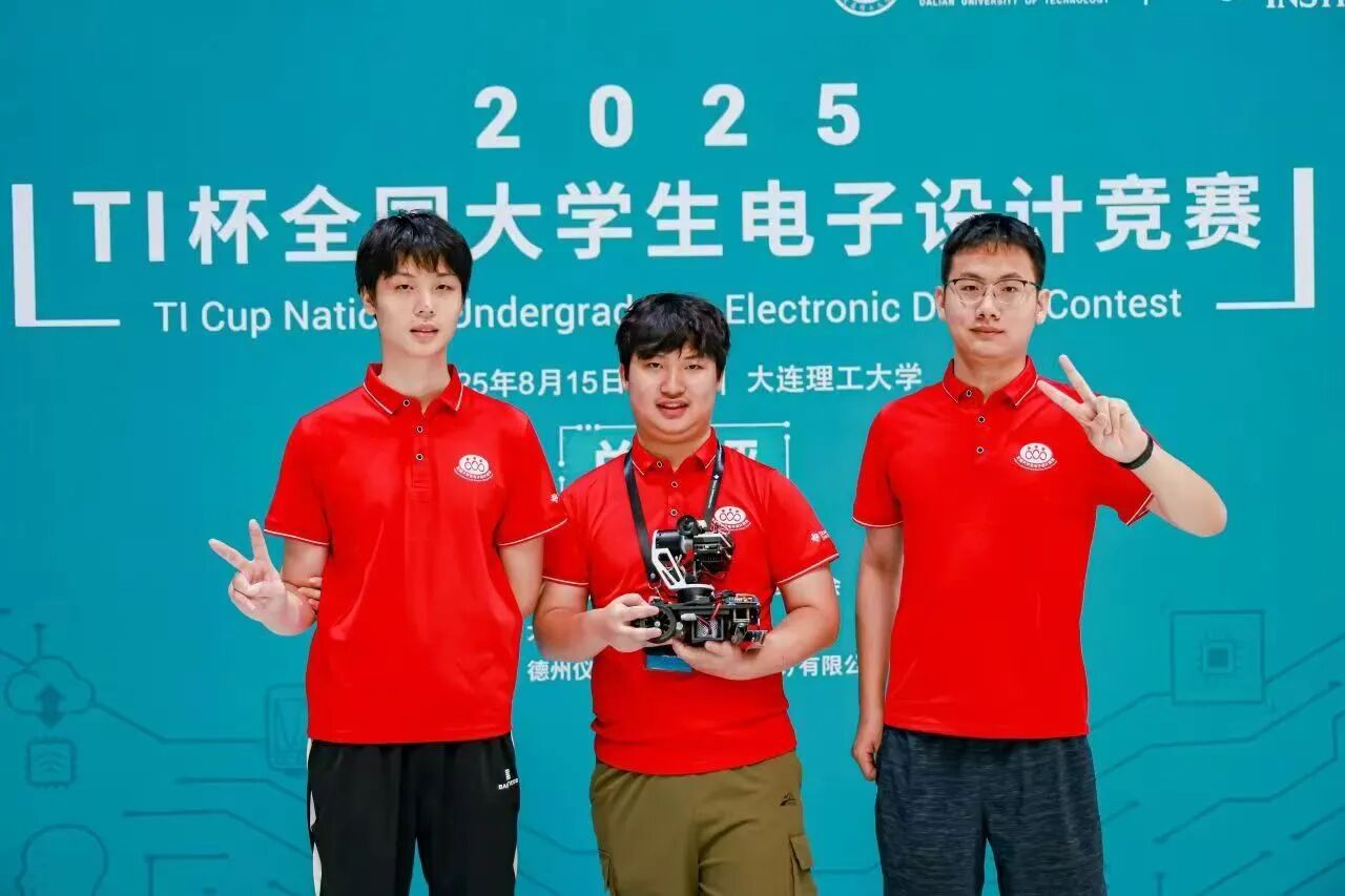 大二暑假,他再次向电赛“TI杯”发起冲击。这一次,他与郭兰鑫、王昊组队,从全国两万多支队伍中杀出重围,以第一名成绩捧回最高奖“TI杯”。成果被多家媒体专题报道,获行业名企关注,更实现全网开源。