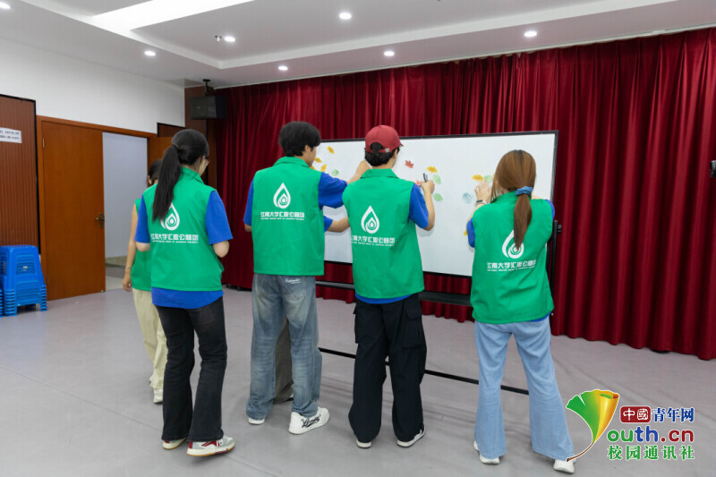 图为实践团成员收集居民承诺制作“环保留言墙”的过程。孙涵 供图